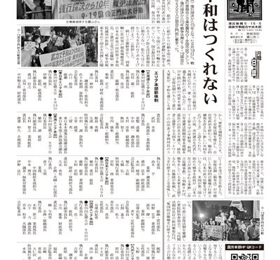 3303号 「武力で平和はつくれない!強行採決から10年戦争法廃止!9・19国会正門前大行動」/エリア本部新体制/闘争指示第2号(抜粋)/核の平和利用などあり得ない etc